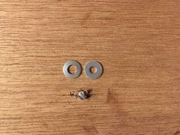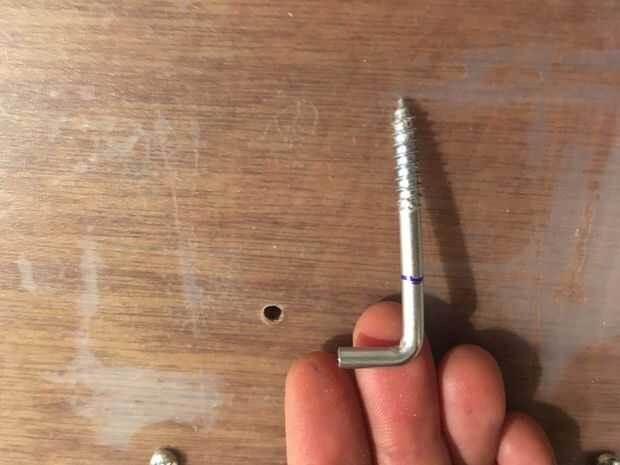 3. Ponga el gancho a través del agujero y soldar la arandela plana de dos a la final de la misma para que no se caiga hacia fuera.
