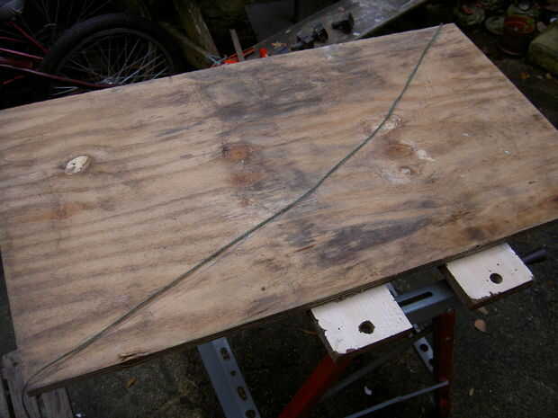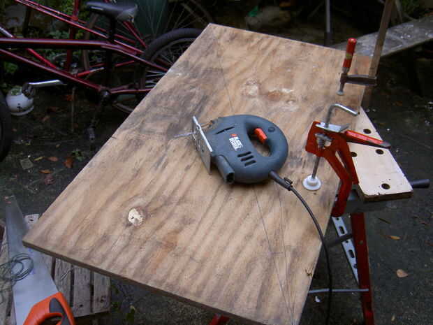 Corte a lo largo de la línea diagonal, no una curva, no necesita ser perfecto, así que utilicé una sierra de calar, porque es más rápido.