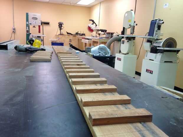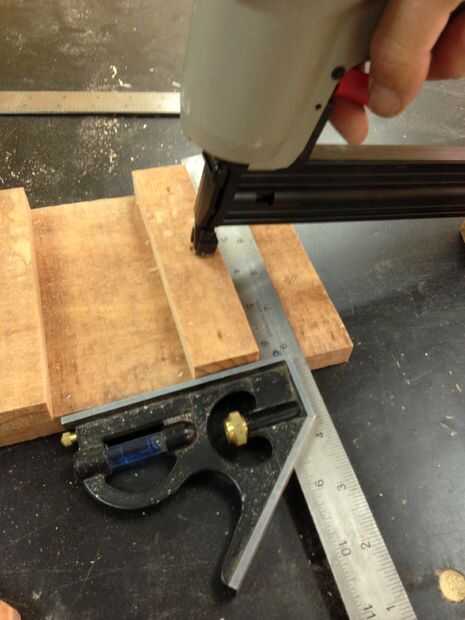 Me aseguré que eran cuadrados en la tabla con cuadrados regla de combinación. Usted puede usar pegamento para madera en este punto ya bien para asegurarse que los peldaños.