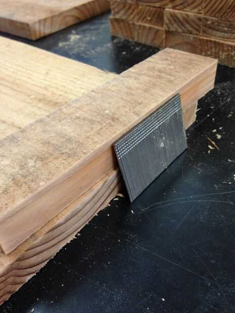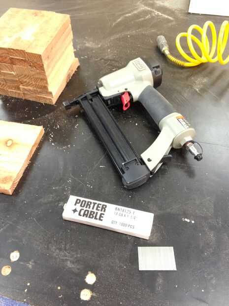Usé a una Brad Nailer para disparar el calibre 18 x 1 1/4' clavitos en los peldaños para sostenerlas en lugar.