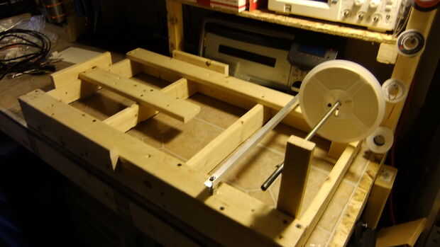 El diseño del carro iba a reducir el peso de todo el proyecto. MDF es muy denso y debe utilizarse para las piezas que requieren de estabilidad dimensional. Ya que el carro apenas tiene la cinta y rodillos y plantea la plataforma para alimentar la cinta por debajo de la mesa, no es muy importante se hizo del MDF. He utilizado pedazos de desecho de la madera puesta en el taller que funcionó a la perfección!