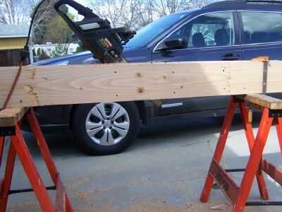 Usa una motosierra eléctrica para terminar separando las dos rampas.  Es crudo, pero funciona bien para esta aplicación.  Hacer todo lo posible para mantener a la guía de la hoja en ángulo recto a la superficie.