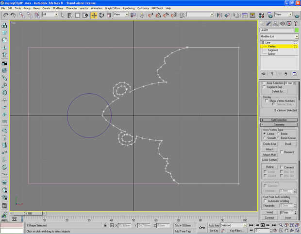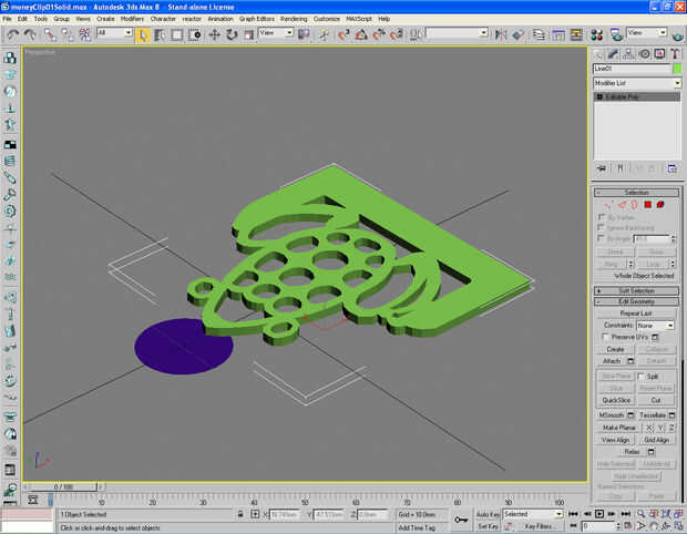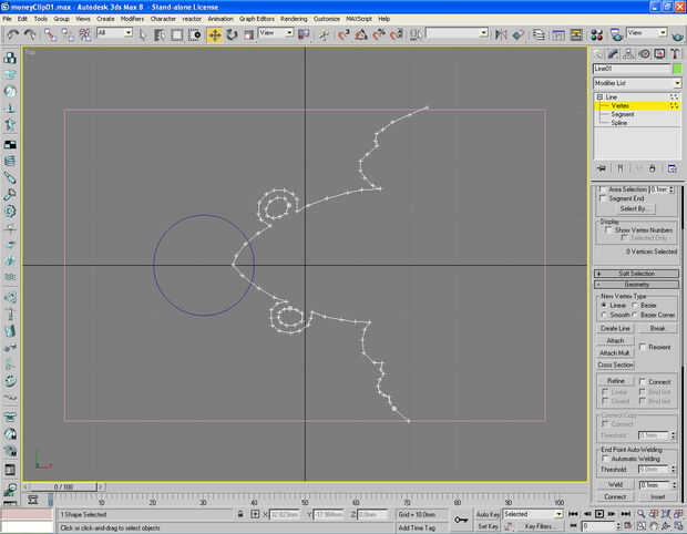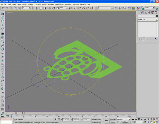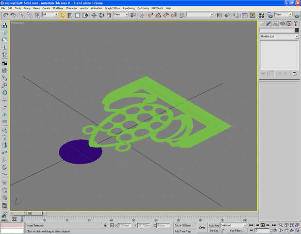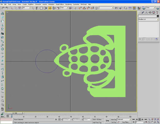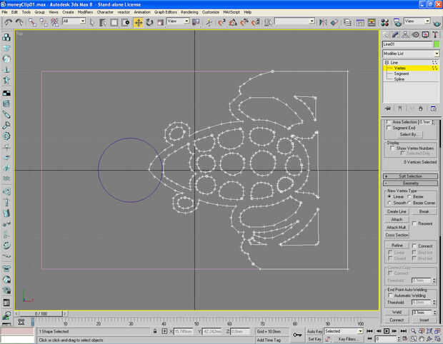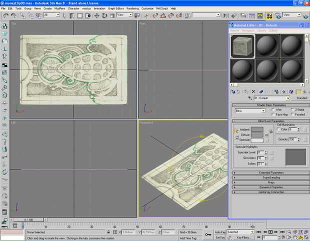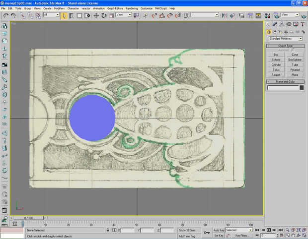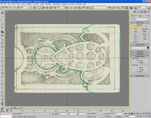 Antes de empezar a trabajar con 3DS Max 8, escaneé el diseño final en mi cuaderno de bocetos. Y editado la imagen digitalizada en Photoshop, por recortar la imagen a la zona del clip de dinero solamente. Luego guarda la imagen en la carpeta de trabajo.