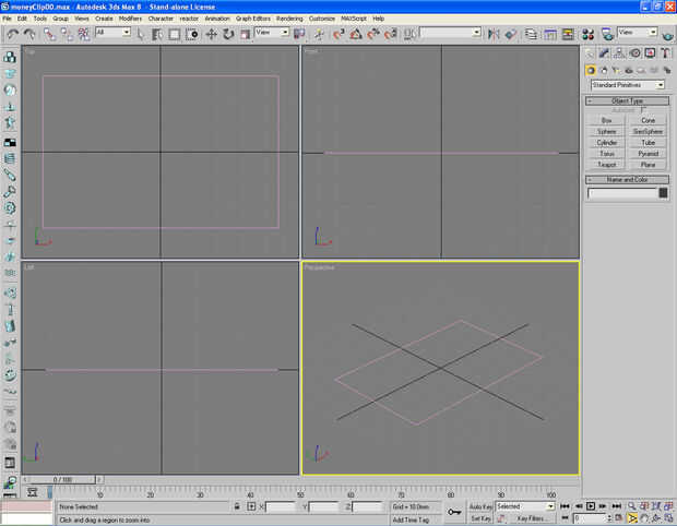 Imagen 1 En el 3DS Max 8, creé el rectángulo de la herramienta "Standard Primitives". Y lo convirtió al rectángulo sólido.
