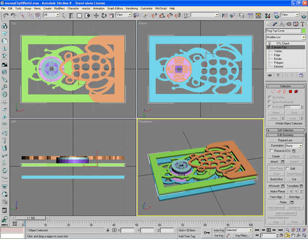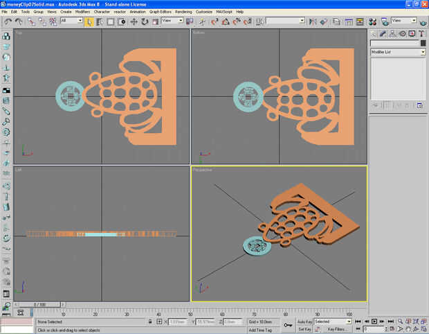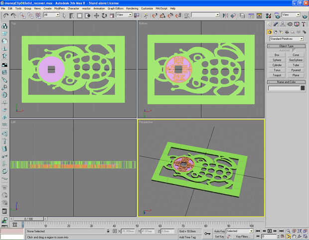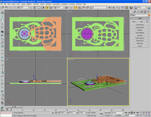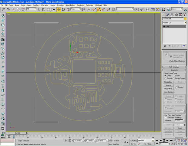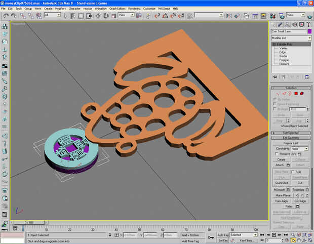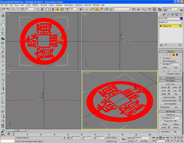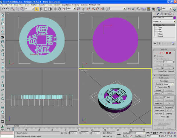 Imagen 4, 5 Convertir la moneda a la superficie 2D y extrusión del 2D en modelo 3D de la moneda. Haga una copia de esta moneda 3D y luego ocultarla.