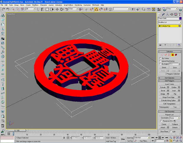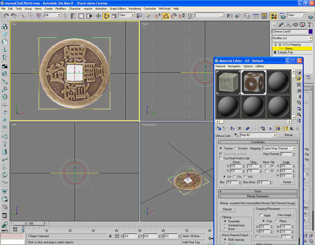 Imagen 2 Utiliza el círculo de referencia de la moneda, luego había convertido al modelo sólido. Y cargar la imagen preparada de la moneda en un editor de materiales a utilizarse en el círculo sólido.
