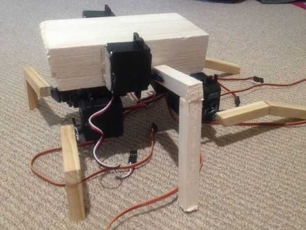 Paso 1: Pegar un cuerno del servo a cada lado del bloque de madera. Conecte los servos con las piernas a los cuernos de la derecha (ver en la foto de arriba).