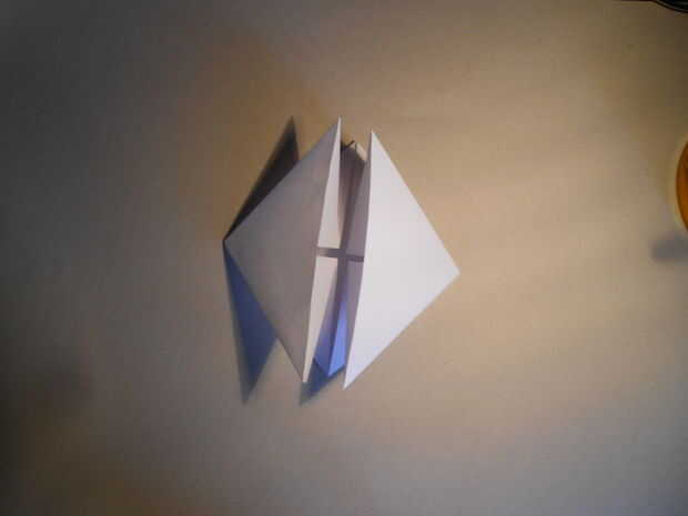 lo que se necesitapaper♥sciccors♥pencil duro (regla si es necesario)Paso 1: ♦Makeing el cuerpo 1st:get una esquina superior de su papel y doblar hacia un lado, como se ve en la foto.2nd:do lo mismo con el otro lado.3rd:get los 2 lados en el centro y