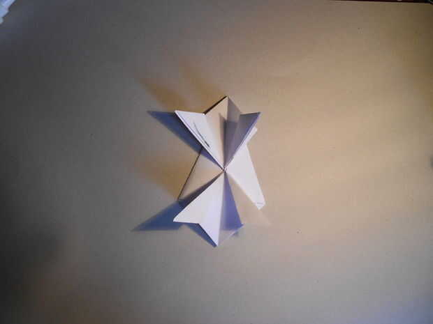 lo que se necesitapaper♥sciccors♥pencil duro (regla si es necesario)Paso 1: ♦Makeing el cuerpo 1st:get una esquina superior de su papel y doblar hacia un lado, como se ve en la foto.2nd:do lo mismo con el otro lado.3rd:get los 2 lados en el centro y