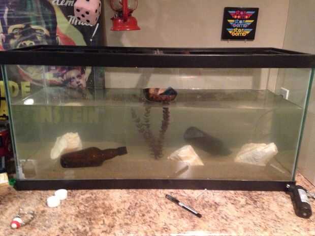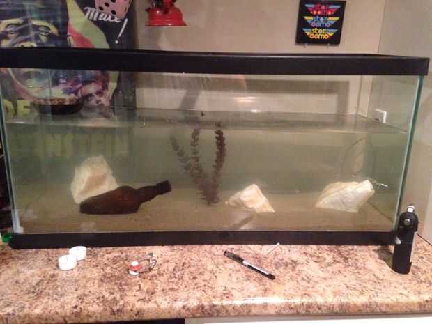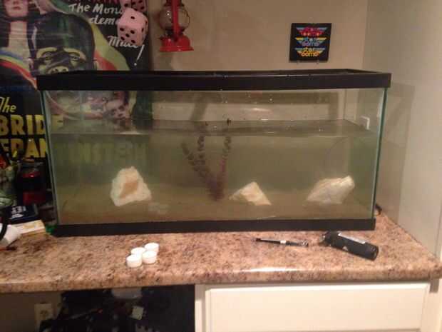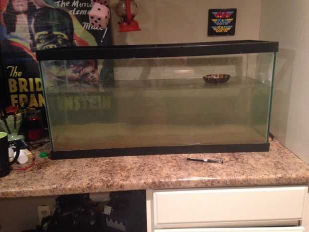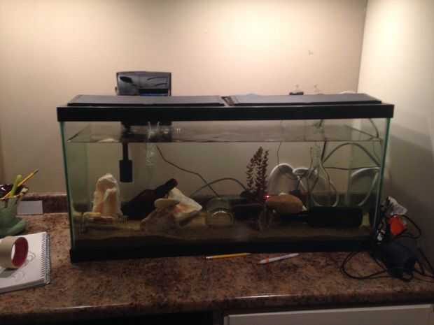 tuve la suerte suficiente conseguir un tanque de mi tía que tenía acumulando polvo en el sótano. Limpiar simplemente con agua y papel toalla porque no quiero productos químicos en el tanque. Conseguir un tanque libre realmente ayudó a fuera mi billetera pero necesito un filtro y un calentador.