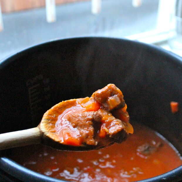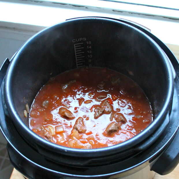 Si hacerlo en la estufa, tapar y cocinar a fuego lento durante 45 minutos a una hora o hasta que la carne es suave y agradable.