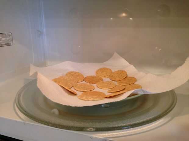 Separar las galletas en la toalla de papel sobre la placa y la Nuke para 40 secondsh.