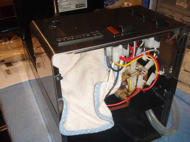 Coloque un paño dentro para coger el peso de las virutas de acero y el rostro de la máquina así.