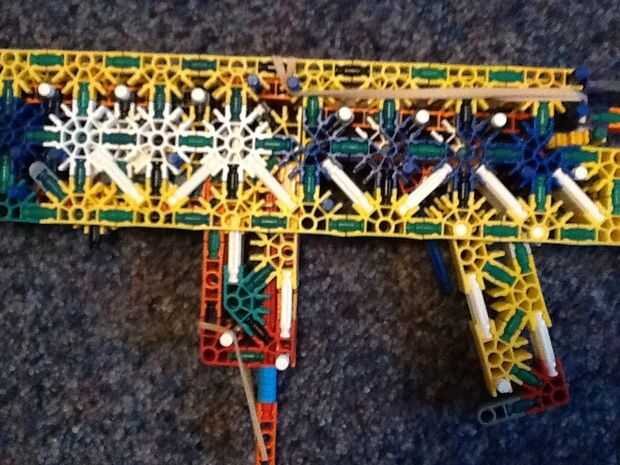 hello knexers! hoy te traigo mi g36c de KVG modelo del rifle de asalto.No dispara, pero se ve bastante coolDe Pro-se ve cool-casi exacto tamaño-archivos adjuntos-barril frontal cosa parece realista, se divide como el real-mags son extraíblesDe con-no