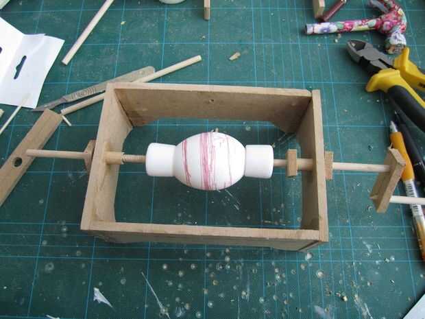 comenzó a pegar los pedacitos y pegamento epoxi para los tapones de la silla y la espiga. Comprobar donde el huevo fue mejor colocado entre los titulares de huevo y luego pega los tapones en su lugar y pegado entonces el sostenedor de la pluma en su lugar. pega la lapicera cuando fue empernada a la caja así que sabía no deforme o no ser alineados.