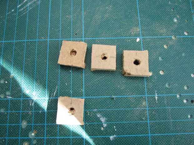 Los agujeros perforados en estos "tapones" son 0,6 cm de diámetro.
