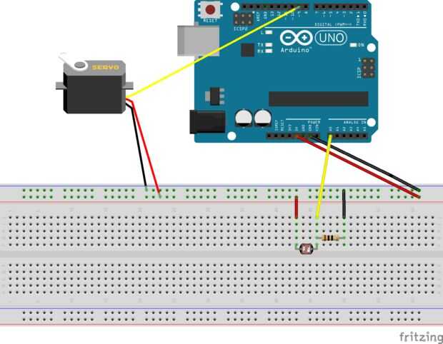 ALS het doosje af es moeten nos gaan denken aan de Arduino hier moet een programmaatje op komen mueren de servo al azar een kant op laat draaien. Programmaatje de dit moet OOK meten de ldr minder licht op vangt zodat nos Kunnan zien de iemand z'n mano er lang haalt.