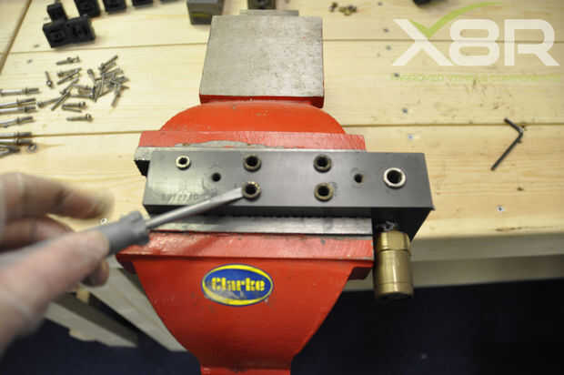 Eliminar la x 2 anillos en cada orificio de los prisioneros se quitaron, para esto usan un destornillador o una herramienta más suave que el bloque de válvulas.