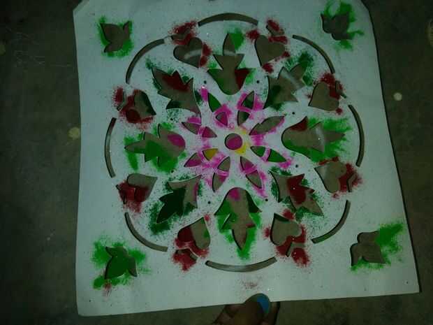 los siguientes pasos...1) siempre limpia el área de la tierra donde el Rangoli es otro el color del Rangoli no salen correctamente.2) no te preocupes un nuevo diseño, si eres principiante puede utilizar un diseño de un libro. Designss geométricas tal