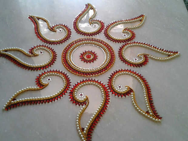Cualquier cosas buenas suceden personas pueden celebrar haciendo Rangoli. Ya sea de cualquier festival o pooja personas siempre darles la bienvenida con un Rangoli auspicioso. Diseños Rangoli son decorativos y simbolizan una cálida bienvenida y mucha suerte.