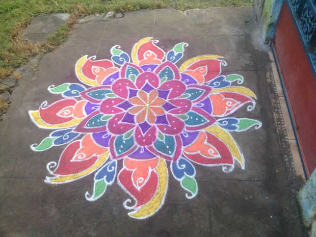 formas. Indio rangoli es una obra de arte única que se practica en toda la India. Todas las casas están adornadas con estos hermoso kolam, diseños kolam, rangoli kolams durante ocasiones especiales como fiestas, matrimonio etc.. Hay muchos patrones rangoli o kolam, que se utilizan para hacer diseños coloridos en el piso. Cada año se realizan competiciones de Kolam para fomentar este arte único. Aquí un Kolam hermosos diseños que usted puede probar en su casa.