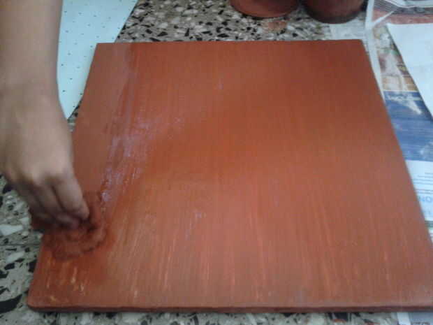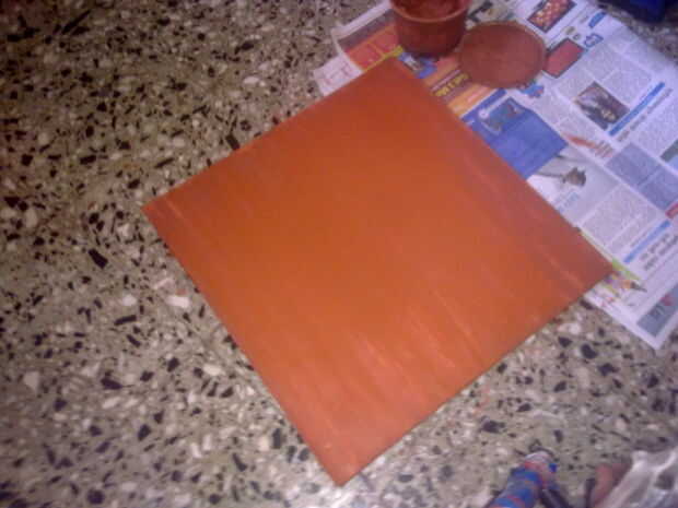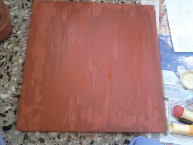 me cubrió el tablero con el color rojo dos veces para dar acabado uniforme y esperé hasta que muere completamente hacia fuera.