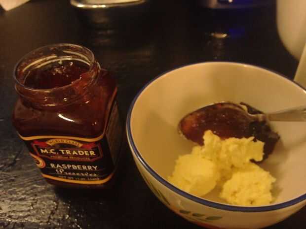 En lugar de mezcla de la frambuesa sabor en como sólo hizo, sacar su relleno en sus conchas como normal con el relleno básico. Ahora, añadir una cucharadita de conserva de frambuesa a cada depósito antes de doblar para arriba y hornearla.