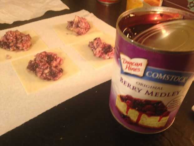 Por lo tanto, hacer eso. Añadir una cucharadita de rellenos de pasteles berry. Utilizamos un medley de berry que tenía arándanos, zarzamora y estoy seguro que un montón de otros tipos de bayas. Fue sabrosa.