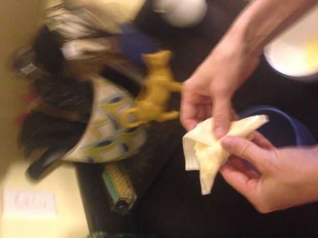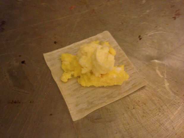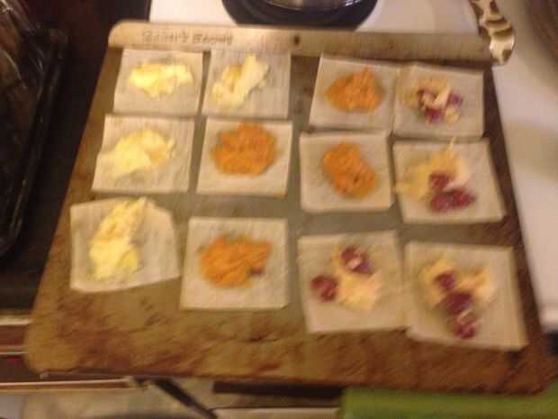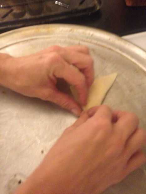 OK, ahora estamos dispuestos a doblar el relleno en las envolturas de wonton.