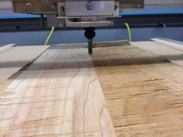 También hemos utilizado en el otro borde y utiliza el CNC como un cepillo grande para algunos cedro borde vivo. Utilizando los extremos como una situación de sujeción