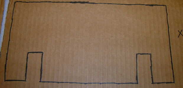 P3: Top conector 1. usando un poco más grueso (2 capas) cartón (S1), extraer 1' de largo y 6'' conector ancho superior pieza con lápiz (T4) y la regla (T3) 2. recorte conector superior con cuchillo (T2)