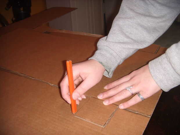 3. con el lado cortado (P5) como plantilla, traza otro lado (P5) con lápiz (T4) en el panel de la cartulina (S4)