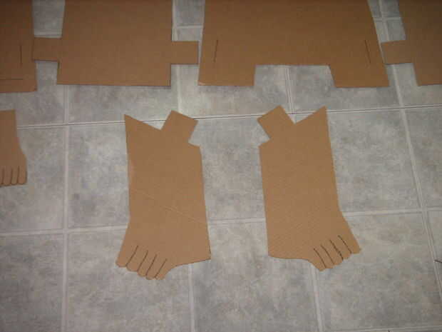 3. usando la regla (T3), cuchillo (T2) y almohadilla de corte (T6) cortó el brazo con la mano une (P6)