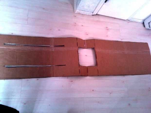 1. medir y marcar un 6'x 1.5 ' pedazo de cartón con una regla (T3), lápiz (T4) y cuchillo (T2).