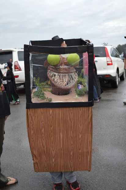 Mi hijo, Blake, le pide que sea una pecera para Halloween este año. Él es un aficionado de los peces. Tiene una pecera de 55 galones en su habitación que ama entrañablemente. Estoy seguro que es de donde vino su idea.