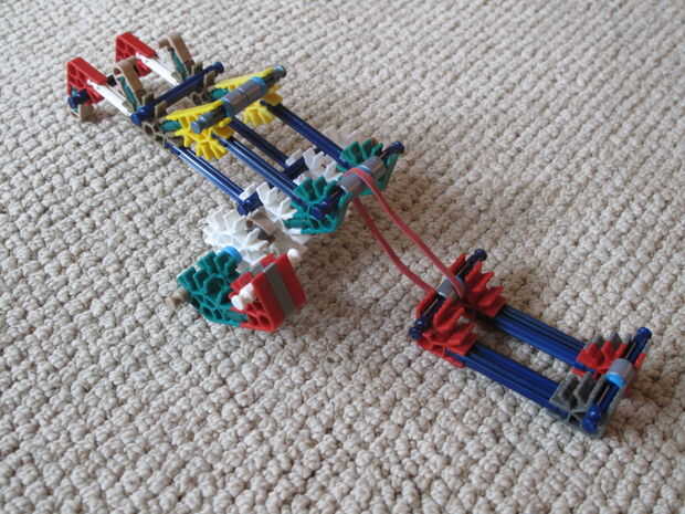 PIC. 3 - construir la catapulta. Esta sección también incluye la banda de goma. He usado la goma roja de la arcade electrónica que KVG establece.