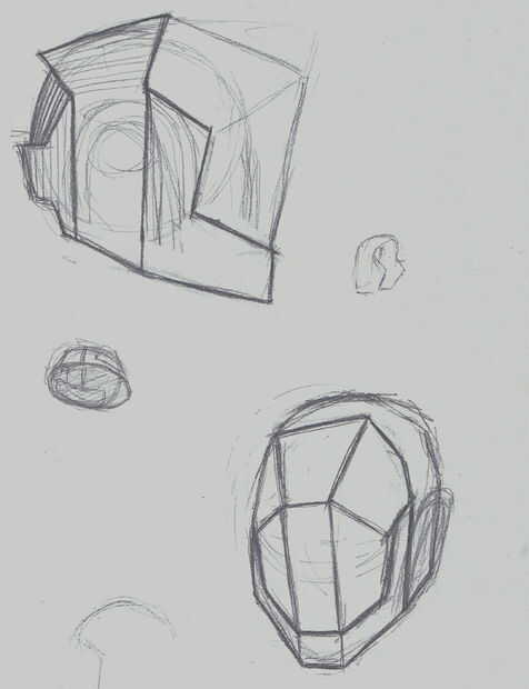 Primero comencé a trabajar en los bocetos. Estaba pensando en cascos de Daft Punk híbrido, algo boxy pero atractivo. Tomé mi libro Sketch creativo habitual y comenzó a dibujar!