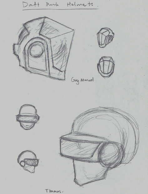 Primera imagen, la idea inicial. Tomé el casco de Guy-Manuel bastante extrema. Era diferente y original. Sin embargo, Thomas era un poco original.