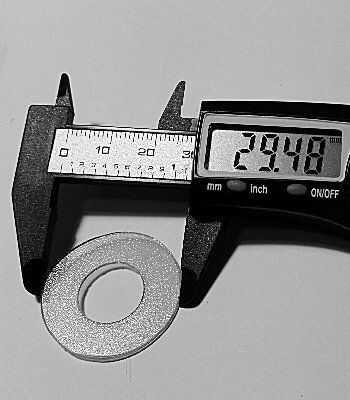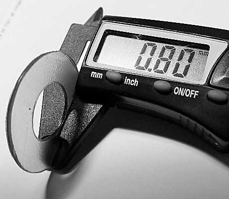 Dibujé y corte un disco cerca a 30mm de diámetro y con el interior del agujero ligeramente menor que el diámetro exterior de la jeringa (como es difícil hacer el agujero más pequeño) y utiliza papel de esmeril de la herida alrededor de un lápiz ligeramente, para ampliarla para caber firmemente en la jeringa. Finalmente, calientan los bordes (muy cuidadosamente) para pulirlos, aunque era sólo para efectos visuales.