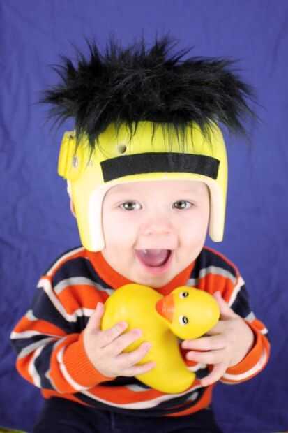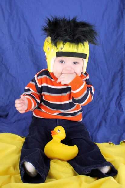 Mi hijo lleva un casco plagiocefalia , también conocido como una ortesis craneal de la remodelación. Hacer usando el casco cada día más diversión, hemos hecho un montón de accesorios, casco, incluyendo sugru cuernos de diablo y un arco iris mohawk.