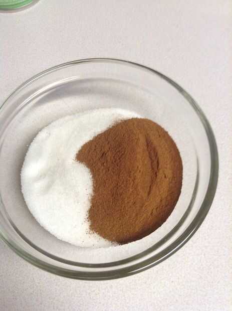 Poner sus palomitas en el microondas y lo metes hasta que esté listo y mezclar la canela y azúcar juntos en un tazón pequeño.