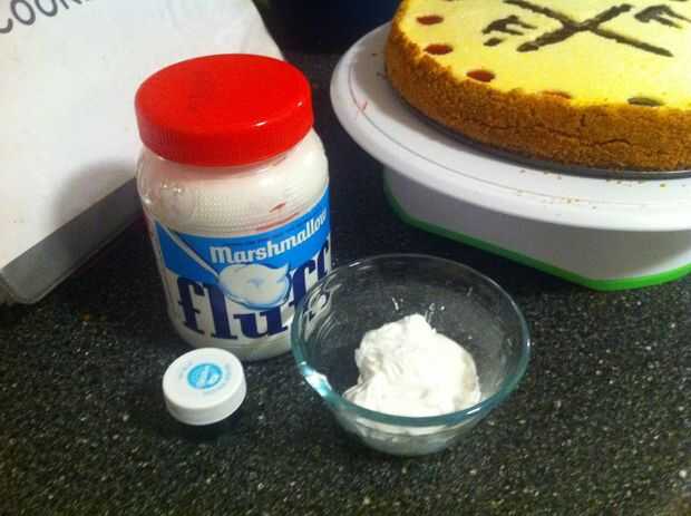 Hacer su seno malvavisco salsa: Mezcle la pelusa de la melcocha con su colorante. Una vez que estés feliz con el color puede que necesite adelgazar un poco con jarabe de maíz con el fin de conseguir que salen fácilmente de su manga pastelera.