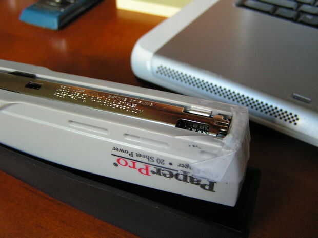 Como su un poco cómo se detiene la secadora cuando lo abres ya que hay un pequeño botón que pone Prensas cuando se cierra la puerta. Así que si quieres para alojarse cuando abres la puerta todos que tienes que hacer es cinta el botón abajo. Solo se aplica a su grapadora y va perdiendo las grapas.