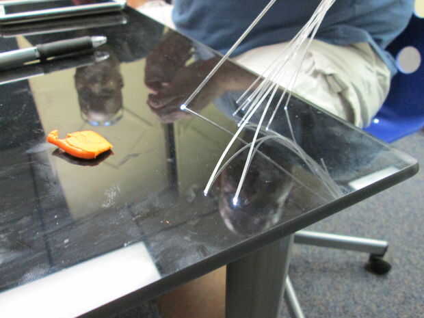 este es el método que utilizo para hacer mi resplandor-dot LED cabos y banderas.Materiales necesarios:* 0.75 mm fibra conectada a una fuente de luz LED* pistola encoladora caliente* teflon u otra superficie antiadherente* frío metal de la cuchara en