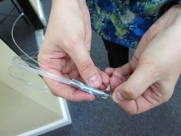 este es el método que utilizo para hacer mi resplandor-dot LED cabos y banderas.Materiales necesarios:* 0.75 mm fibra conectada a una fuente de luz LED* pistola encoladora caliente* teflon u otra superficie antiadherente* frío metal de la cuchara en
