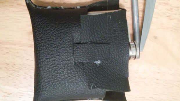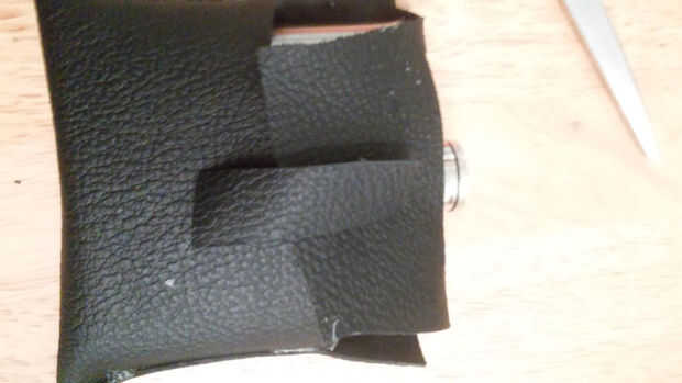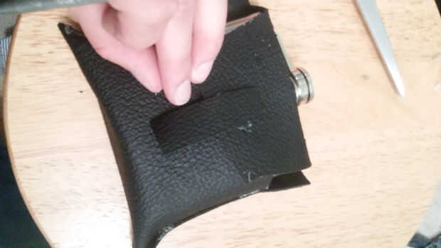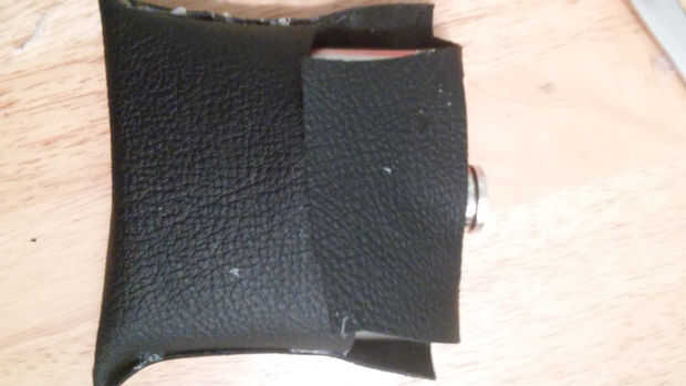 Luego agregó un cierre al titular pegando una tira de tela a la tapa luego cortar un mango en el cuerpo del matraz
