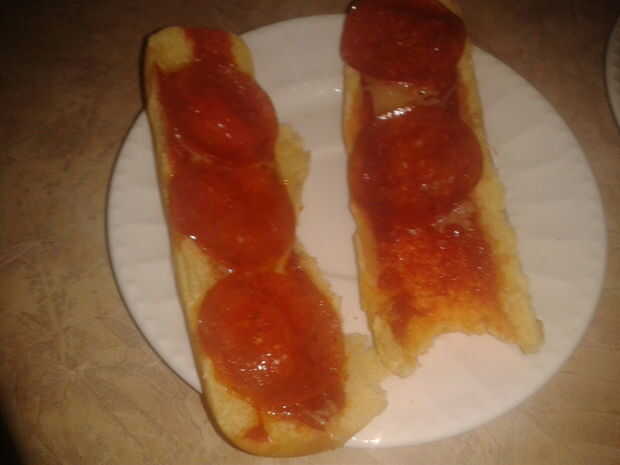 voy a compartir mi merienda favorita. Pizza de pan francés!Es rápido, fácil y barato... para no hablar de YUMMY!!Paso 1: ingredientes ~ Pan francés... $0,99~ salsa de spaghetti (o pizza salsa cualquiera)... $2,00 pero dura un buen tiempo~ queso de su