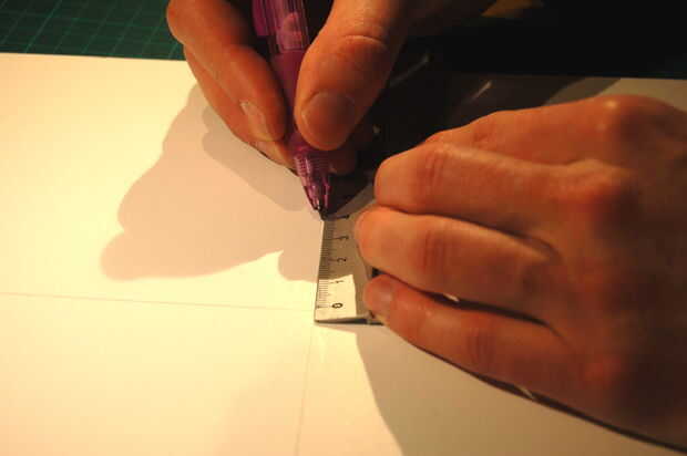Vamos a cortar la forma de la Junta de espuma blanca, así que marca el tablero con lápiz (así que usted puede frotarla hacia fuera!) y prepárate cortarlo. He utilizado mucho las líneas de guía / marcas que no van a cortar para hacer más fácil marcar con precisión la Junta.