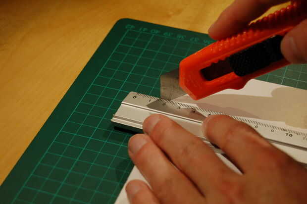 Tratar de mantener el ángulo de corte bastante bajo (tal vez 45 grados a la superficie) y si encuentra el cuchillo que se pega usted puede cortar la capa superior de la tarjeta primero y luego cavar más profundo en un segundo ir a la corte a través a la parte inferior. Corte en dos va me pareció buena para las curvas más difíciles.