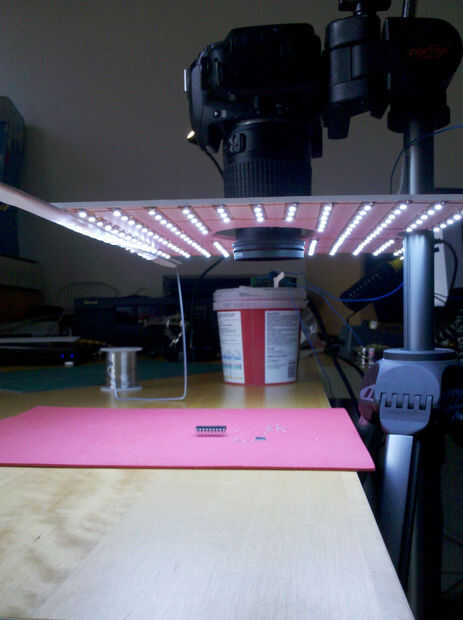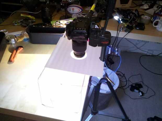 Cómo montar variará para su caso particular. Es muy ligera, por lo que se puede suspender con cuerdas, cintas, o en mi caso yo doblado unos colgadores para hacer una rápida y fácil soporte. Como se puede ver, mi cámara y trípode de trabajan con él muy bien.